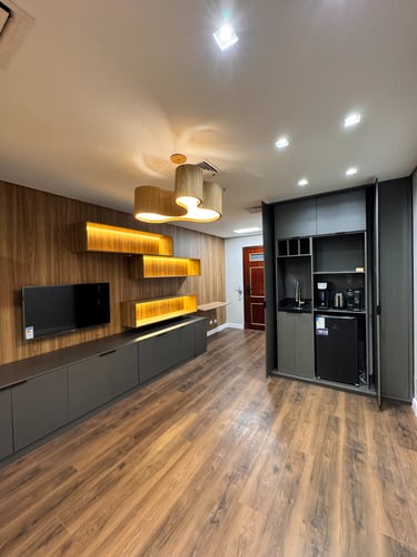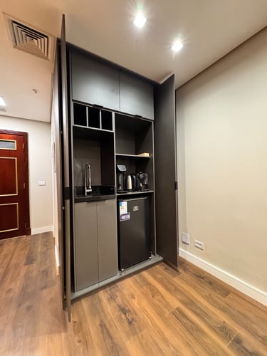 Cozinhas Planejadas: Armários, bancadas, ilhas, painéis decorativos e prateleiras, tudo feito sob medida para otimizar cada centímetro do espaço.