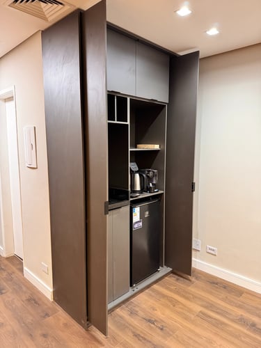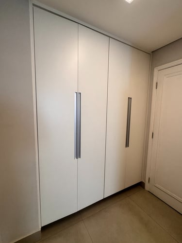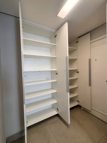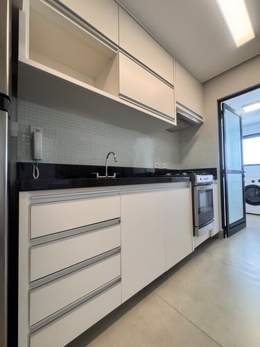 Áreas de Serviço e Varandas Gourmet: Armários para lavanderia, bancadas e painéis para churrasqueiras, nichos e suportes.