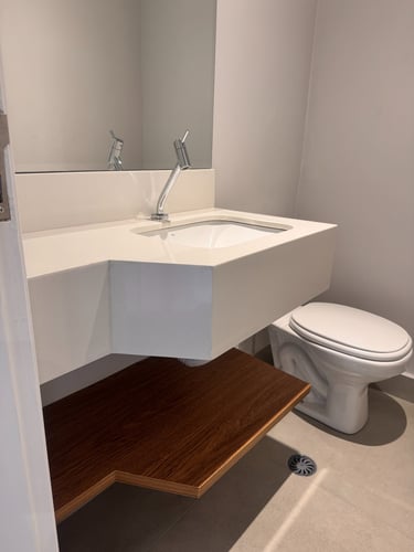 Banheiros e Lavabos: Gabinetes, nichos, armários com espelho e bancadas.